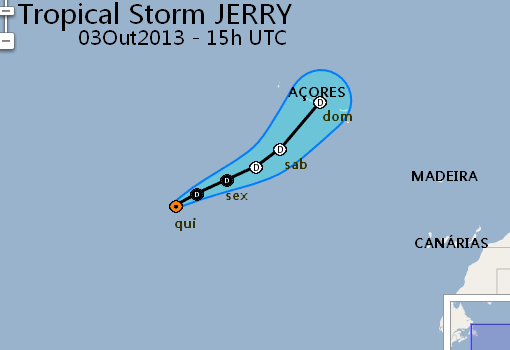 A tempestade Jerry perdeu intensidade nas últimas horas e tornou-se uma depressão tropical com ventos na ordem dos 55 km/h.